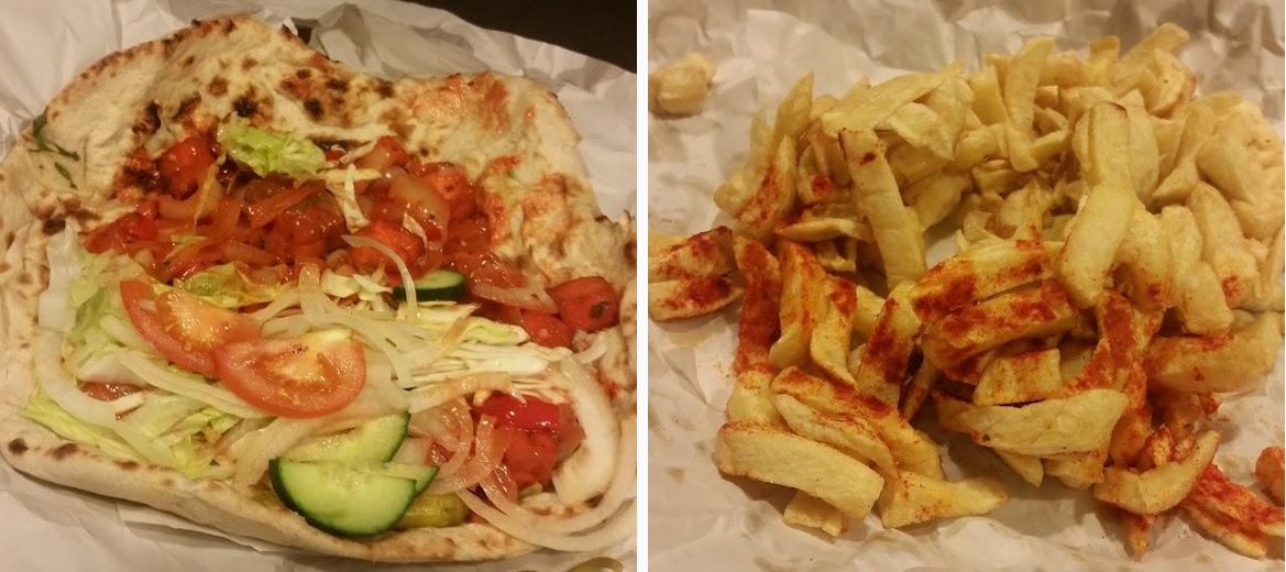 One of the large naan with Donner, salad and chilli sauce so big it's two meals 😋